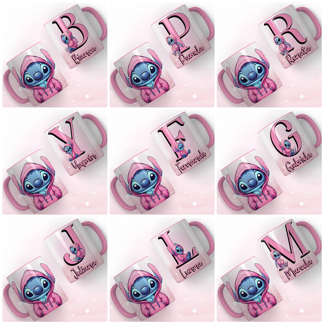 Artes para Caneca Alfabeto Stitch Rosa e Azul Arquivo em Png
